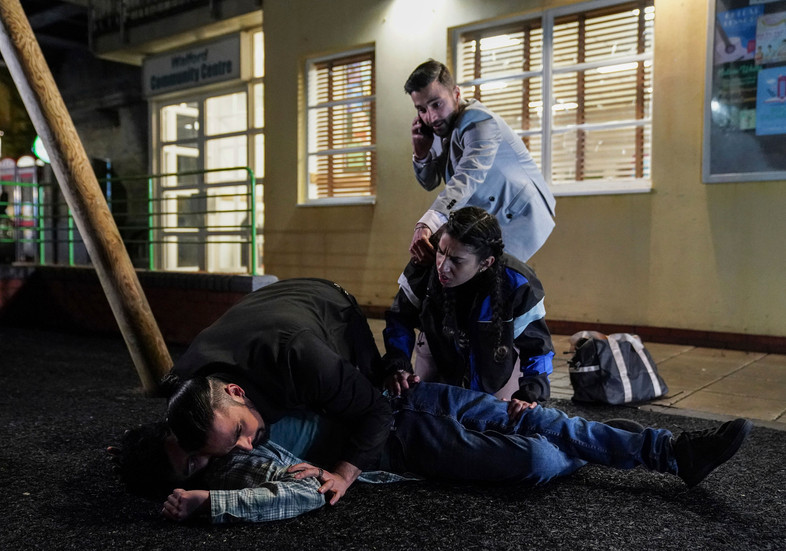 After Denzel is a no-show, Nugget goes looking for him but falls ill, so heads to No.41 for help. Inside, an oblivious Priya and Nish are finalising their ‘deal’ as Nugget slumps down onto the pavement.